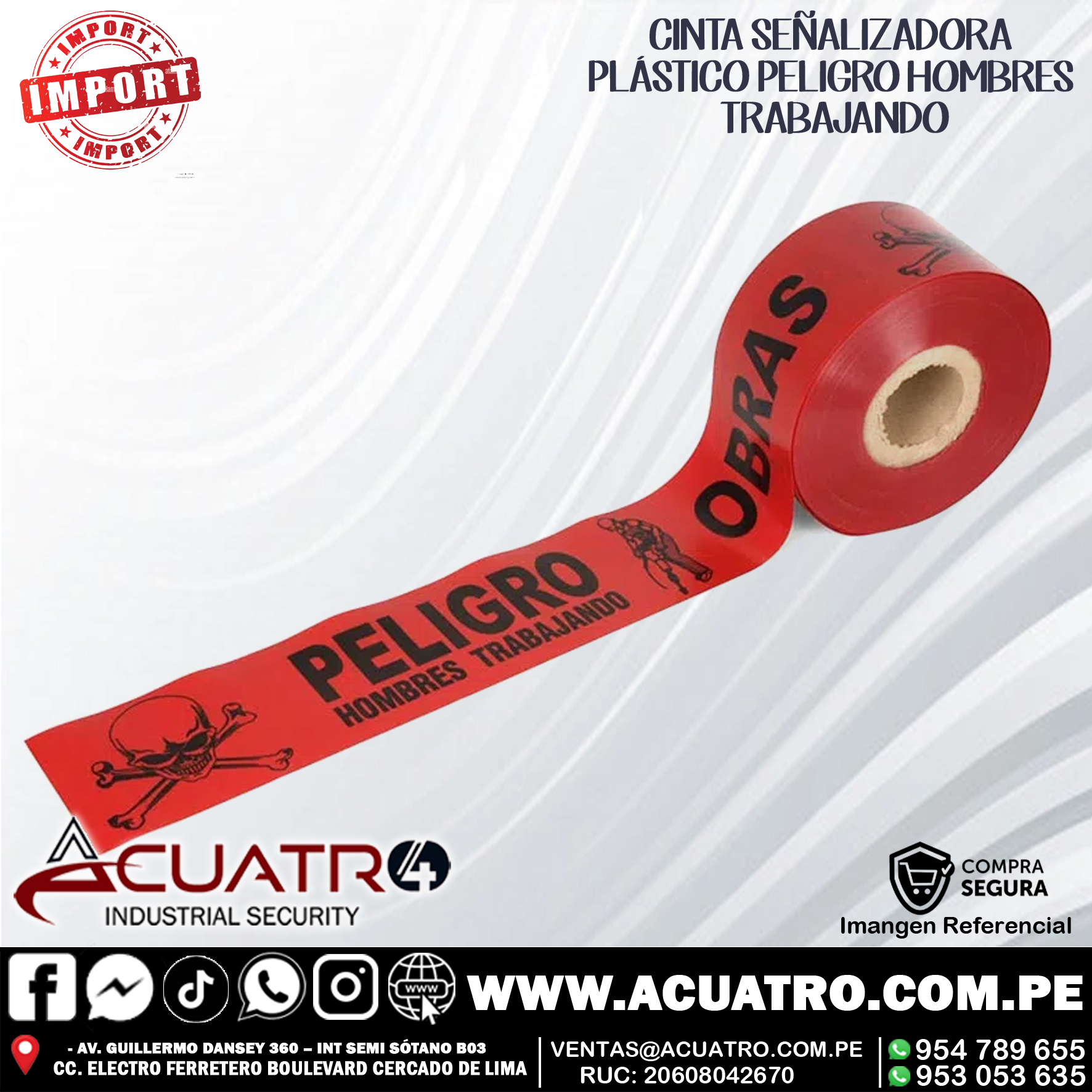 CINTA SEÑALIZADORA ROJA PLÁSTICO PELIGRO HOMBRES TRABAJANDO