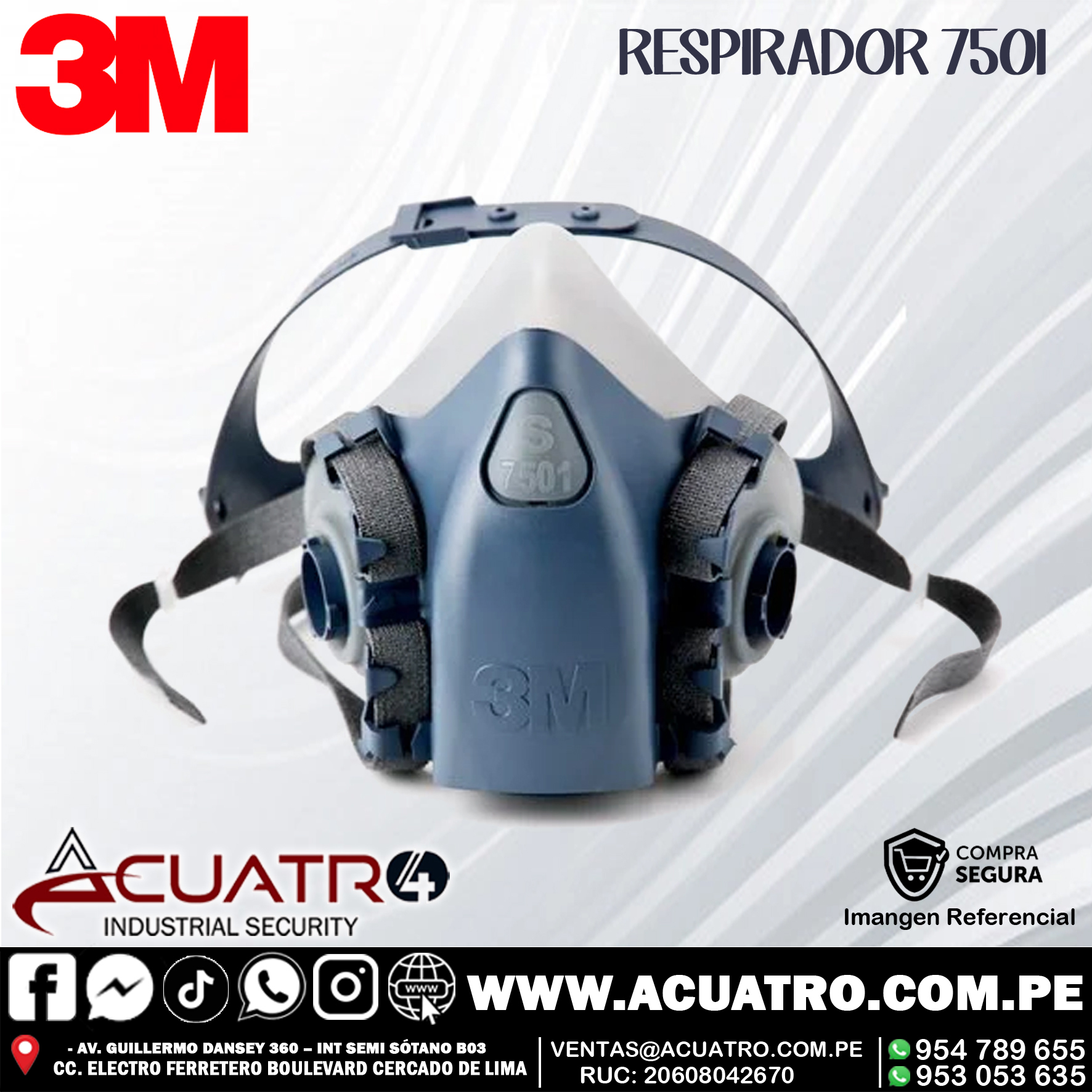RESPIRADOR MEDIA CARA DE SILICONA SERIE 7501(S) 3M